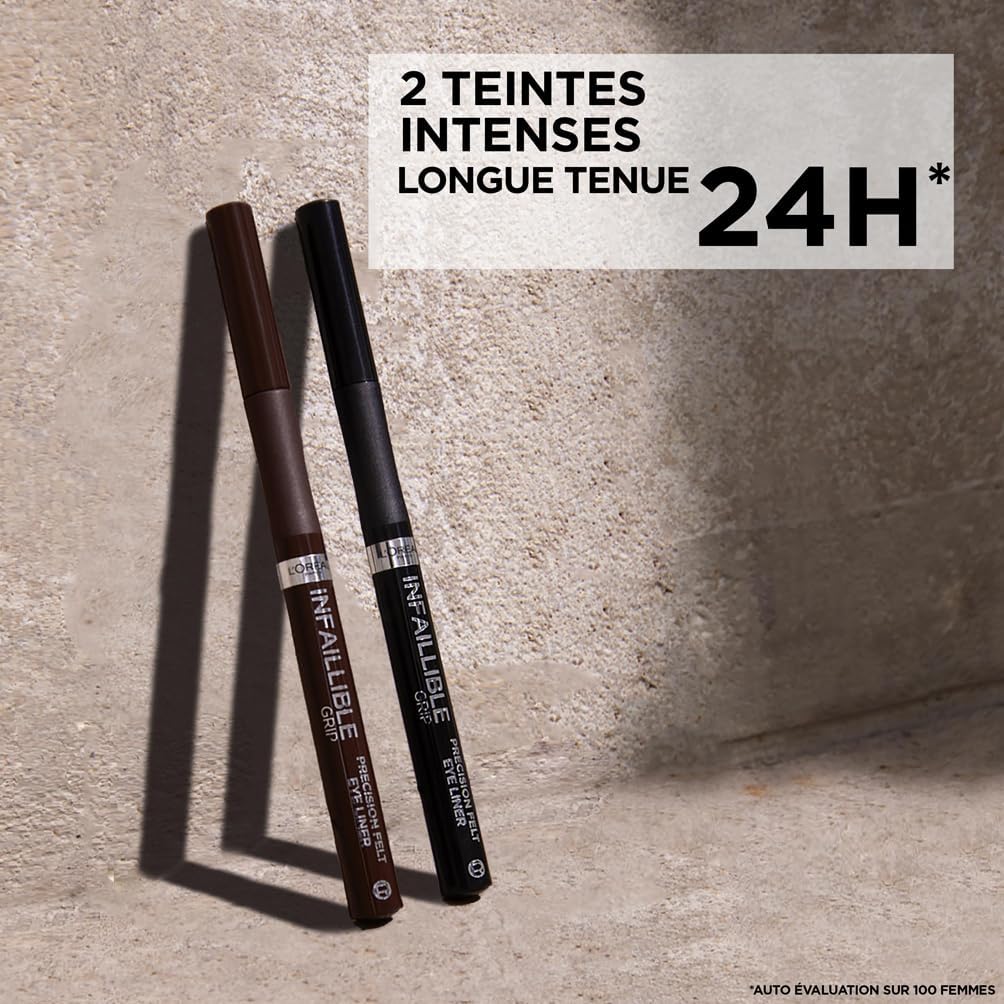 - Eyeliner feutre avec pointe ultra fine et souple pour un trait net et précis longue durée jusqu’à 24H* (*Test consommateur sur 100 volontaires)