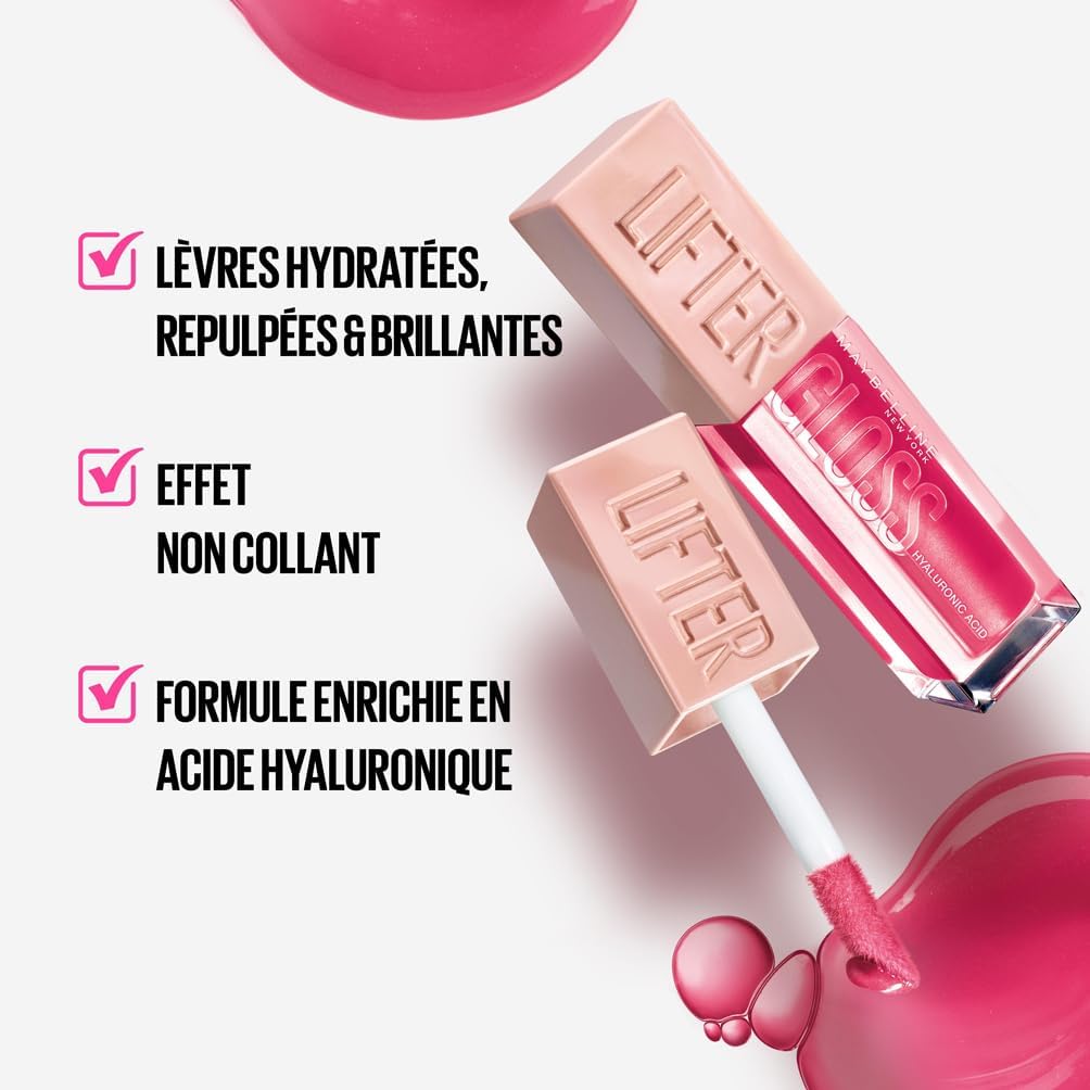 • Gloss à lèvres au fini brillant non collant et à l’effet repulpant pour une bouche hydratée et pétillante aux nuances gourmandes